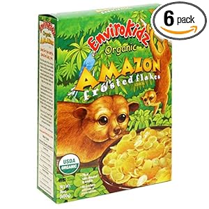 EnviroKidz organic Amazon frosted flakes cereal is fat-free crispy flakes made of gluten-free corn meal--a genuinely tasty cereal. Be sure, you will not have to lower your expectations even if you are eating a gluten-free, wheat-free breakfast. You do not have to settle for ordinary flakes or tasteless gluten-free cereal when Nature’s Path offers so much more--a pinch of this, a dash of that, but never anything artificial. This product contains no artificial additives, preservatives, or colors. Moreover, the USDA organic certification on this product means that the ingredients are grown without synthetic herbicides, pesticides, and nasty chemicals. This is a sacrifice-free way of enjoying your breakfast. Moreover, this box features the adorable kinkajou, commonly known as the honey bear.