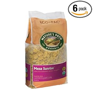 Nature’s Path organic Mesa Sunrise cereal is the “height of great taste”--a unique medley of Indian corn, flax, and amaranth blended into crunchy, golden cereal flakes and naturally sweetened. Be sure, you will not have to lower your expectations even if you are eating a gluten-free, wheat-free breakfast. The flavor, while somewhat akin to corn flakes, is richer and nuttier. The difference is organic flax, buckwheat, and the ancient grains quinoa and amaranth. These were once the staples of Aztec and Peruvian homes and now you can enjoy their unique tastes and many nutritional benefits including omega-3 fatty acids. You do not have to settle for ordinary flakes or tasteless gluten-free cereal when Nature’s Path offers so much more--a pinch of this, a dash of that, but never anything artificial. This product contains no artificial additives, preservatives, or colors. Moreover, the USDA organic certification on this product means that the ingredients are grown without synthetic herbicides, pesticides, and nasty chemicals. This is a sacrifice-free way of enjoying your breakfast.