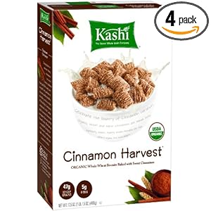 Bountifully delicious organic whole wheat biscuits are baked with cinnamon and natural sweetness. The warm, spicy scent of organic cinnamon will flood your senses when you open the box. Woven into the center of our organic wheat biscuits is a fusion of cinnamon and organic evaporated cane juice crystals - a true taste experience you'll enjoy balanced with the goodness of over 20% of your daily value for fiber. Diets rich in whole grain foods, like Kashi Organic Promise Cinnamon Harvest cereal and other plant foods, and low in fat, saturated fat and cholesterol may reduce the risk of heart disease and certain cancers, certified organic by quality assurance international. Exchange: 3 carbohydrates.